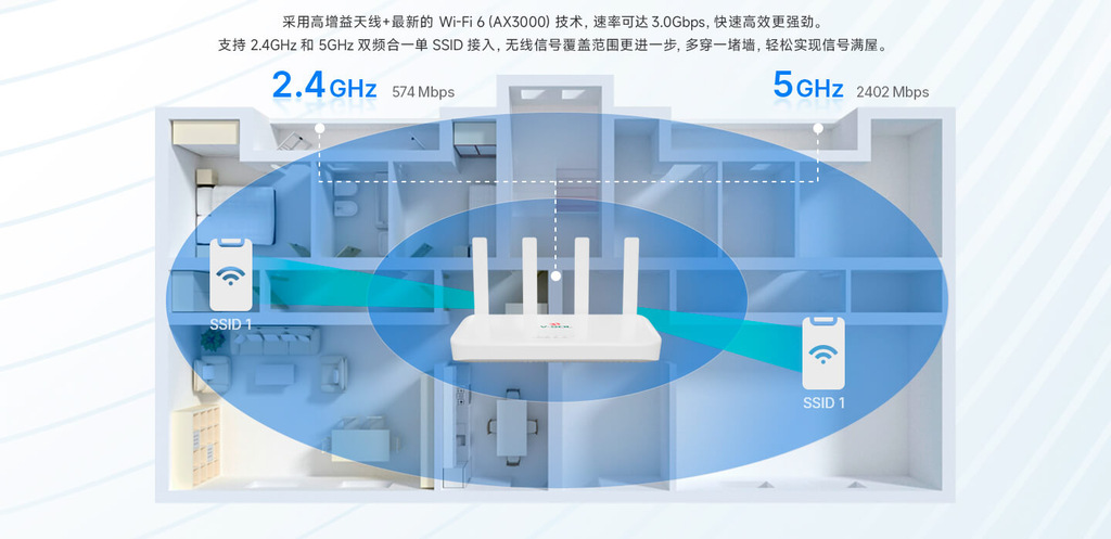 最新Wi-Fi6技术,千兆Wi-Fi全覆盖