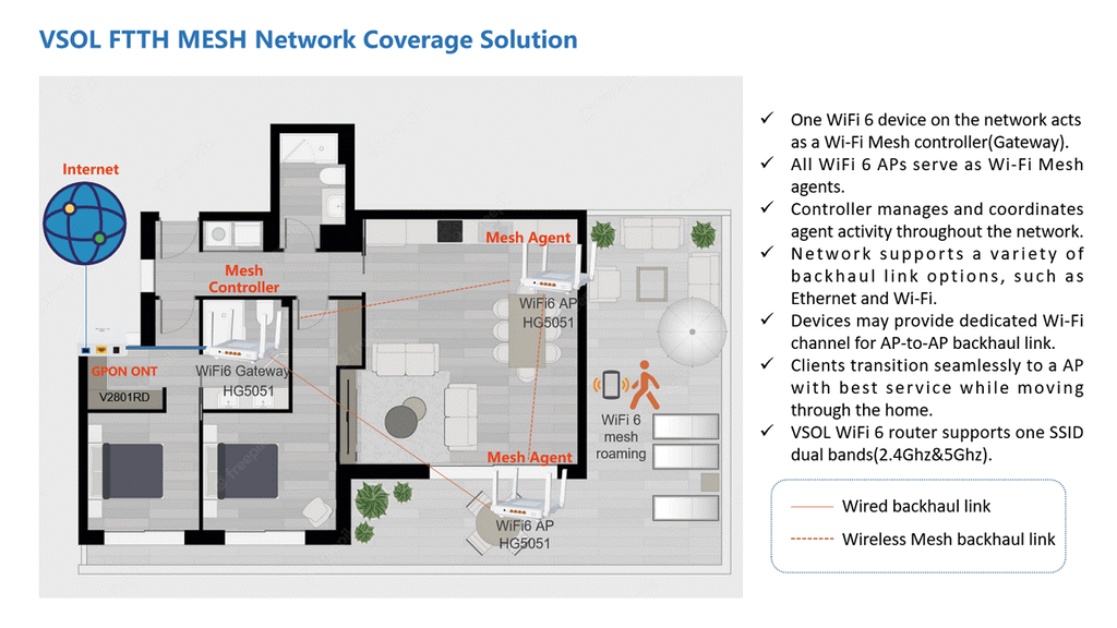 Details of VSOL FTTH WiFi 6 Mesh Network Coverage Solution